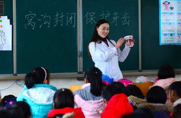 為加強口腔疾病健康教育和健康促進工作,提高兒童口腔疾病防治知識知曉率,近日,鄲城縣疾控中心組織口腔專業(yè)技術人員,到第三實驗小學開展“鄲城縣健康口腔助成長口腔健康教育活動”和“鄲城縣兒童口腔疾病綜合干預項目進校園活動”。在活動現(xiàn)場,口腔醫(yī)師為二年級學生上了三場生動的口腔健康教育課,詳細講解口腔疾病防治知識。