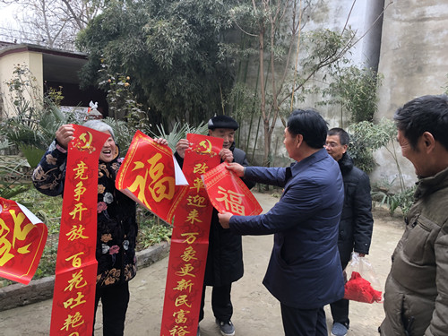 據(jù)了解,當(dāng)天下午時(shí)莊村黨支部訂制的3000多套春聯(lián),免費(fèi)贈(zèng)給448戶村民。記者看到,這些春聯(lián)的內(nèi)容都是承載著黨和政府的關(guān)懷,有的是歌頌改革開放的,有的是幸福報(bào)黨恩的。該村村民朱在靈領(lǐng)到春聯(lián)后立刻把春聯(lián)拿回家,他將門頭擦干凈后把春聯(lián)貼了上去。在門口懸掛著的國旗的襯托下,顯得格外喜慶?!按謇锩赓M(fèi)發(fā)這種帶黨徽的春聯(lián)已經(jīng)第三年了,這種春聯(lián)傳遞了黨的好聲音,推動(dòng)了群眾對黨的擁護(hù),現(xiàn)在村民的精神面貌也貌煥然一新?!敝煸陟`高興地說。
