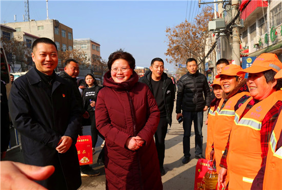 2月1日,臘月廿七,積雪消融,年味兒越來越濃。扶溝縣長張穎波來到軍烈屬和現(xiàn)役軍人家屬代表的家中,送上關(guān)心和祝福;專門來到困難群眾的家中,兌現(xiàn)數(shù)月前的一句承諾;來到辛勤工作的環(huán)衛(wèi)工人、交警和水廠工作人員的身邊,代表縣委、縣政府向?yàn)榇蠹疑嵝〖业膭趧诱咧乱猿绺叩木匆?,送上親切的問候;來到敬老院老人們的身邊,把黨和政府的溫暖送到老人們的心坎上……