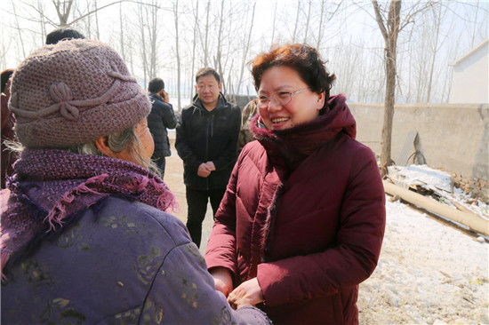 2018年5月11日,張穎波在看望大新鎮(zhèn)陳樓村的困難群眾吳鳳蓮時(shí),曾對她說過一句話,“等你新房蓋好,我再來看你。”76歲的吳鳳蓮把這句話牢牢地記在了心里。一見張穎波的面,拉著手留著淚連聲說:“俺家房早就蓋好了,就一直盼著恁來。我知道恁忙,可就想讓恁看看俺的房……”老人和一位患病的兒子一起生活,去年5月份張穎波來時(shí),她家正因“危房清零”活動而扒掉舊房蓋新房。張穎波當(dāng)時(shí)還特意滿足了老人的一個(gè)愿望,安排村干部為她家房內(nèi)專門壘個(gè)隔斷?!拔遥罚岸嗔?,從來沒住過這么好的房、從來沒過過這么好的日子!”新建的三間磚瓦房、一間配套齊全的廚房和壘好的院墻讓老人感慨不已,發(fā)自肺腑地說著黨和政府的好?!袄先思遥医裉炀褪窍肟纯捶孔痈脑斓脑鯓?,也給你拜個(gè)早年。”張穎波拉著吳鳳蓮老人的手說:“房子蓋好了,也算了了你的一個(gè)心愿,有黨和政府的幫助,日子會越來越好。你要照顧好自己和孩子,有啥困難就找村里干部?!?/p>
