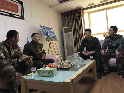 本報(bào)訊 追憶崢嶸歲月,鐵血軍魂永在。2月3日上午,春節(jié)的腳步越來(lái)越近,空氣中彌漫著節(jié)日喜慶的氣息。3名返鄉(xiāng)探親的“周口好兵”、一等功臣柳東坡、劉威、崔二偉相約慕名來(lái)到被中央軍委授予“英雄步談機(jī)員”榮譽(yù)稱號(hào)、一等功臣海水干家中,聆聽(tīng)老英雄講述當(dāng)年的戰(zhàn)斗事跡,上了一堂生動(dòng)的國(guó)防教育課。