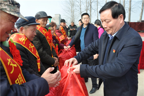 3月5日上午,商水縣化河鄉(xiāng)與縣移動公司在大王莊文化廣場召開脫貧光榮戶、孝老敬賢戶文明衛(wèi)生戶表彰暨送文化、衛(wèi)生下鄉(xiāng)活動議會??h委常委、宣傳部長李本磊、縣工會主席盧紅兵、縣移動公司經(jīng)理黃小帆、化河鄉(xiāng)黨委書記高永強等出席活動現(xiàn)場。大王莊村及周邊村莊部分群眾500多人參加了活動。