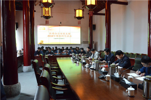 3月29日下午,鹿邑縣委辦公室黨支部召開2018年度組織生活會并開展民主評議黨員活動??h委書記梁建松,縣委常委、辦公室主任宋濤以一名普通黨員身份參加會議??h委辦公室機關全體同志參加會議。