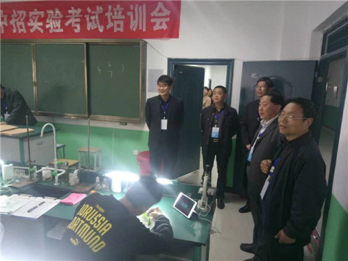 2019年度河南省中招理化生實(shí)驗(yàn)操作考試正在進(jìn)行中,4月13日上午,鄲城縣教體局黨組書記、局長劉現(xiàn)營帶領(lǐng)副局長張祥增,黨組成員馬力彬,黨組成員、縣政府督學(xué)陶永昌等的陪同下,深入考點(diǎn)考場巡察理化生實(shí)驗(yàn)操作考試工作。