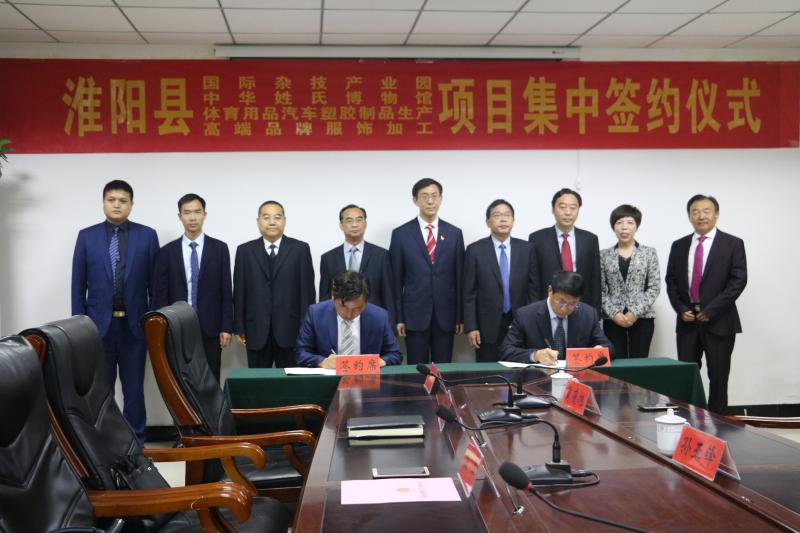 本次會議共簽約四個項(xiàng)目,總投資約17.5億元。分別是:河南龍都文化娛樂有限公司投資5.1億元的國際產(chǎn)業(yè)園項(xiàng)目。翰高兄弟(北京)投資集團(tuán)投資10億元的中華姓氏博物館項(xiàng)目。東莞啟昊服飾有限公司投資1.2億元的高檔服飾加工項(xiàng)目;溫州奕銘新材料股份有限公司投資1.2億元的體育及汽車用品項(xiàng)目。