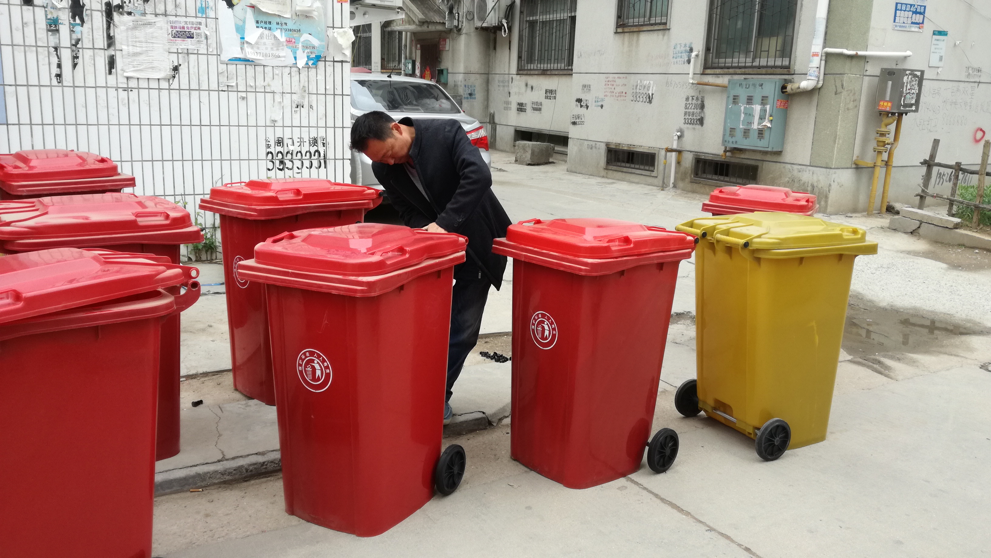 4月25日,在川匯區(qū)七一路辦事處潁河社區(qū)潁河小區(qū)內(nèi),辦事處工作人員按照“創(chuàng)衛(wèi)”標準要求對該小區(qū)敞開式垃圾道進行封堵,并配置了移動式垃圾桶。 記者 牛思光 攝