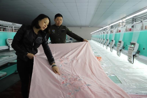 同時(shí),城郊鄉(xiāng)發(fā)揮基層黨員干部和在外創(chuàng)業(yè)成功人士的廣泛人脈資源和經(jīng)濟(jì)優(yōu)勢(shì),引導(dǎo)社會(huì)投資發(fā)展產(chǎn)業(yè)助力脫貧攻堅(jiān)。谷集行政村美紡科技有限公司就是典型個(gè)例。石永紅、石永華、石磊姐弟3人來(lái)自江蘇南通,他們盯上了城郊鄉(xiāng)的富余勞動(dòng)力,投資800萬(wàn)元建設(shè)了近2000平方米的紡繡車間,20臺(tái)國(guó)內(nèi)先進(jìn)設(shè)備可以利用全電腦操作繡出12種顏色的繡品。車間固定用工34人,其中建檔立卡貧困戶2人。只需要看著電腦控制臺(tái)、換布貼布、穿針引線,每人每天工資便可達(dá)到150元。