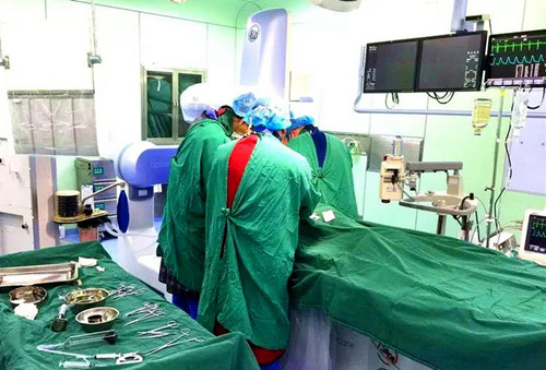 6時(shí)40分,護(hù)送患者的救護(hù)車從張完鄉(xiāng)出發(fā),沿醫(yī)共體縣鄉(xiāng)救治“綠色通道”直達(dá)縣人民醫(yī)院胸痛中心,人民醫(yī)院郭環(huán)宇醫(yī)生帶領(lǐng)介入團(tuán)隊(duì)早已萬事俱備……入院后80分鐘,完成造影并開通血管,患者脫離生命危險(xiǎn)。術(shù)后患者胸痛立刻緩解,生命體征平穩(wěn),手術(shù)成功。