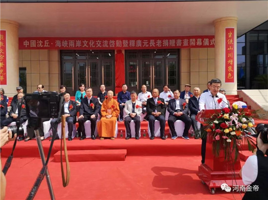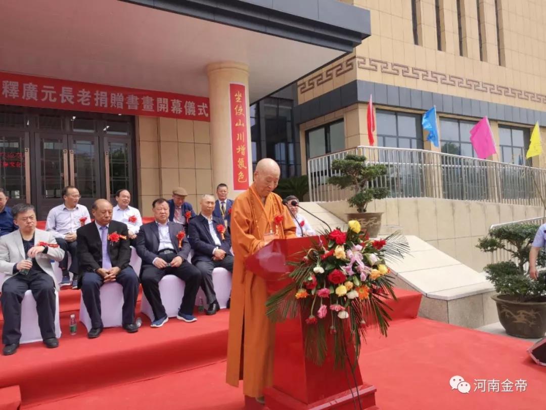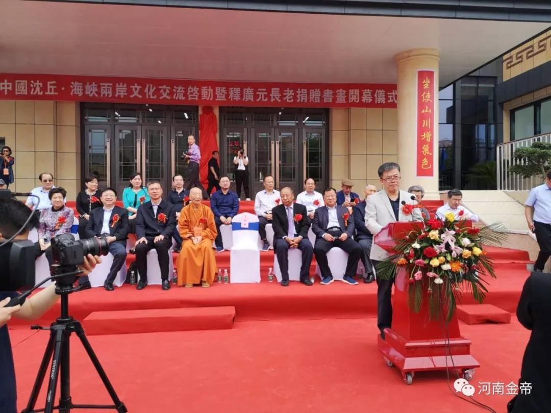 釋廣元長(zhǎng)老在致辭中說(shuō),多年來(lái)雖身在臺(tái)灣,卻時(shí)刻心系故土,為推動(dòng)兩岸同胞心靈契合、深化兩岸文化交流中貢獻(xiàn)自己的綿薄之力。希望此次無(wú)條件捐贈(zèng)的藝術(shù)館古今名家書(shū)畫(huà)數(shù)百幅,能為家鄉(xiāng)文化建設(shè)貢獻(xiàn)微薄之力。同時(shí)提議將釋廣元藝術(shù)館更名為“沈丘藝術(shù)館”,為沈丘文化的發(fā)展繁榮注入新的生機(jī)和活力。