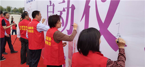 攜手共建衛(wèi)生城,齊心同育文明花。5月19日上午,周口市城鄉(xiāng)一體化示范區(qū)(以下簡稱示范區(qū))創(chuàng)建國家衛(wèi)生城市志愿者服務(wù)活動(dòng)正式啟動(dòng)。市創(chuàng)衛(wèi)辦副主任、市衛(wèi)健委主任金玉貞,共青團(tuán)周口市委書記王春華,示范區(qū)黨工委書記閆立超、管委會(huì)主任張建黨等全體班子成員出席儀式。全區(qū)3600名青年志愿者參加活動(dòng)。