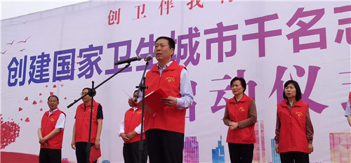 儀式現(xiàn)場,閆立超宣布創(chuàng)建國家衛(wèi)生城市志愿服務(wù)活動(dòng)正式啟動(dòng)。