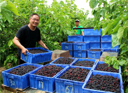 除此之外,桑果的采摘全靠人工,是勞動(dòng)密集型產(chǎn)業(yè),需要大量當(dāng)?shù)氐膭趧?dòng)力,每到采摘季節(jié),公司都會(huì)招用周邊200余名村民到種植基地務(wù)工,僅此一項(xiàng),為每名務(wù)工人員人均增收3000余元?!鞍吃谝嫫飞i┓N植基地采摘桑椹,每天都有100多元的收入。”今年63歲的黃橋鄉(xiāng)孫堤村留守婦女趙美容高興的說(shuō)。