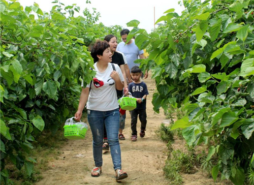 “今天是星期天,帶孩子一起來(lái)桑椹園采摘桑椹,一是欣賞一下桑椹園美麗的風(fēng)光,二是讓孩子體驗(yàn)一下采摘的樂(lè)趣?!?月19日,來(lái)自川匯區(qū)的高女士高興地說(shuō)。