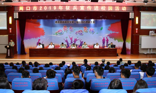 5月27日上午,周口市征兵宣傳進校園在鹿邑縣高中隆重舉行。市征兵辦公室副主任、周口軍分區(qū)動員處處長李保祥,鹿邑縣委常委、縣人武部政委杜寶森,縣人武部部長陳巍和鹿邑縣委宣傳部、教體局、縣高中負責(zé)人及師生800余人參加了此次活動。