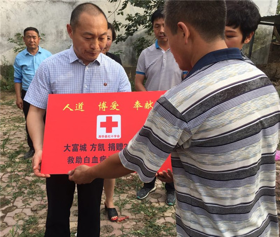 西華縣副縣長(zhǎng)張翠霞、西華縣紅十字會(huì)秘書長(zhǎng)趙紅霞等人聞?dòng)嵹s來,參加簡(jiǎn)短的捐款儀式,并代表縣政府和紅十字會(huì)對(duì)方凱的善舉表示感謝。