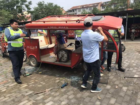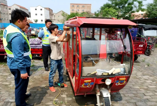 嚴(yán)管形成了高壓態(tài)勢,厚愛更維護(hù)了鄲城縣文明執(zhí)法的良好形象。該縣規(guī)定,對家用電動三輪車、電動四輪車進(jìn)入縣城禁行區(qū)域的,文明執(zhí)法,不予處罰,以暫扣警示、宣傳勸導(dǎo)為主。對于從事非法營運的電動兩輪車、電動三輪車、電動四輪車車主不予經(jīng)濟處罰,車棚自愿切割后放行。對于老弱病殘等特殊情況及時匯報領(lǐng)導(dǎo),酌情處理。