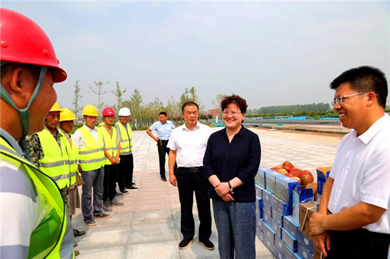 7月16日,扶溝縣長(zhǎng)張穎波來到鄭合高鐵(扶溝段)基礎(chǔ)設(shè)施項(xiàng)目現(xiàn)場(chǎng),為酷暑中仍忙碌在一線的施工人員送來防中暑藥品和西瓜,并實(shí)地督導(dǎo)高鐵路外環(huán)境安全隱患綜合整治等工作。副縣長(zhǎng)任松奎和縣住建局、縣水利局、縣高鐵辦主要負(fù)責(zé)人、相關(guān)鄉(xiāng)鎮(zhèn)長(zhǎng)參加。
