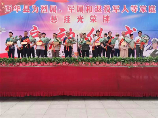 “八一”建軍節(jié)前夕,西華縣啟動(dòng)了軍人軍烈屬懸掛光榮牌儀式、2019年義務(wù)兵家庭優(yōu)待金發(fā)放儀式。營造“一人當(dāng)兵、全家光榮”的良好氛圍,共同鞏固人民軍隊(duì)的“鋼鐵長城”。