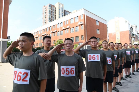 雖已立秋,但炎熱不減。當(dāng)天下午,記者在役前訓(xùn)練基地看到,預(yù)定新兵們?cè)趨^(qū)人武部教官的嚴(yán)密組織下,身穿整齊訓(xùn)練服裝,一絲不茍地進(jìn)行隊(duì)形隊(duì)列訓(xùn)練,汗水溻透脊背,訓(xùn)練熱情高漲,嘹亮的口號(hào)響徹訓(xùn)練場(chǎng)上空,他們以自己的一舉一動(dòng),展現(xiàn)出當(dāng)代軍人不怕苦不怕累的優(yōu)良傳統(tǒng)和立志報(bào)國(guó)的精神風(fēng)貌。