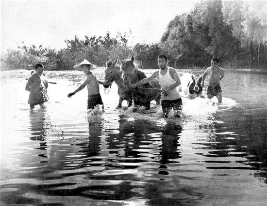“75·8”大洪水西華、項城受災(zāi)最為嚴(yán)重,災(zāi)區(qū)的村民把牲畜趕到大堤上。(圖片來源:劉明和)