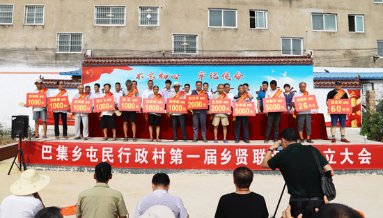 “段志軍每年都捐資捐物回報家鄉(xiāng),他去年捐30萬為巴集大街和屯民村安裝的200多盞路燈已經(jīng)亮了,捐85萬元新建的村室馬上竣工,將是全縣標(biāo)準(zhǔn)最高的,現(xiàn)在又捐60萬元;劉振發(fā)這幾年捐了40萬多,給村里修路、栽樹、幫扶貧困戶,今天又捐26萬;鄉(xiāng)賢會成立之前,大家已累計(jì)捐款240多萬元……”在今年8月6日屯民行政村鄉(xiāng)賢會成立儀式上,朱明理宣布捐款名單時多次被雷鳴般的掌聲打斷;“最難忘的就是村口的那棵大楊樹,最好吃的就是中午剩的涼面條、晚上嗑著大蒜吃?!痹谌T峽創(chuàng)業(yè)的劉振發(fā)的發(fā)言勾起了眾多游子的親情回憶;“啃個干饃,灶火里燒個辣椒一砸,撒點(diǎn)兒鹽就是最好吃的。”在商丘任職的徐其山接過話茬說;“事業(yè)越大,工作越忙。但是,他們從四面八方歸來,這就是對家鄉(xiāng)的情誼,我們村肯定會越來越好?!编l(xiāng)賢徐其民感慨地說;“從屯民走出的大學(xué)生不少,如今長成了企業(yè)家、行政干部等等,如參天大樹,卻不忘根、不忘本,這就是屯民的驕傲。”從事教育行業(yè)35年的鄲城二高校長趙耀身為屯村一員感觸良多……