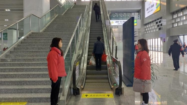 12月1日早上6:30,當(dāng)大多數(shù)人還沉浸在夢(mèng)鄉(xiāng)里,志愿者柯曉艷和同學(xué)已經(jīng)站在周口東站的售票廳,為即將乘坐高鐵出行的乘客做指引。