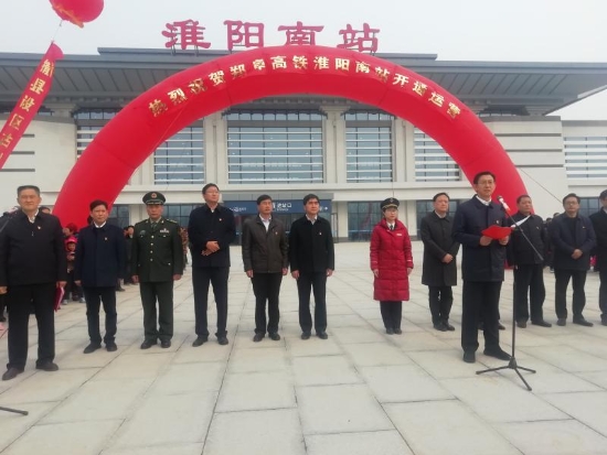 當日上午,暖陽高照,淮陽南站站前廣場人頭攢動?!案哞F來了,激動人心”。為祝賀高鐵開通這一大喜事,淮陽縣舉行了簡樸的鄭阜高鐵淮陽南站正式運行儀式,縣四個班子領導和有關部門負責同志及附近廣大群眾參加了儀式。