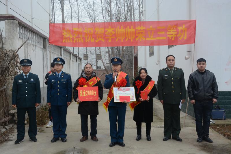 一人參軍,全家光榮;一人立功,全家榮耀。2020年1月2日,沈丘縣洪山鎮(zhèn)廟山李村聽說黃繼光生前部隊要來送喜報,榮立三等功的李帥帥一家特地選擇在村口迎接這份榮譽。接過大紅喜報,李帥帥的母親喜極而泣:活了幾十年了,送兒子當兵也有12余年,今天是我對“軍屬光榮”四個字感觸最深的一次,也是最光榮的一天,沾了兒子的光了……