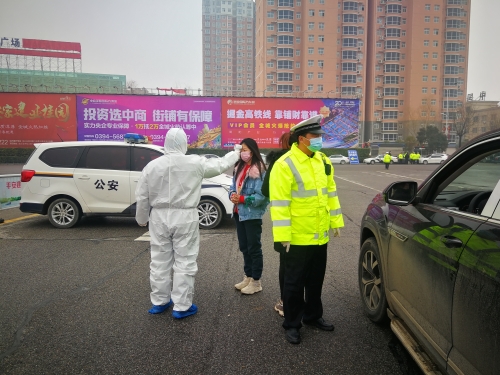 1月27日,寧洛高速沈丘縣收費(fèi)站口,地方交警和醫(yī)護(hù)工作人員正在對(duì)每一臺(tái)下高速的車(chē)輛上的司乘人員進(jìn)行體溫測(cè)量,檢查行駛證、駕駛證和身份證。目前,周口市境內(nèi)各收費(fèi)站和服務(wù)區(qū)設(shè)立衛(wèi)生檢疫站,配備體檢測(cè)溫設(shè)備,對(duì)每一臺(tái)下高速的車(chē)輛上的司乘人員進(jìn)行體溫測(cè)量,檢查行駛證、駕駛證和身份證。同時(shí),要求各單位每天要對(duì)設(shè)施和停靠交通工具消毒,室內(nèi)要保持通風(fēng)。