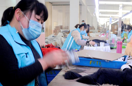 2月23日,鹿邑縣產(chǎn)業(yè)集聚區(qū)內(nèi)的海新化妝用品股份有限公司生產(chǎn)車間里,來自該縣觀堂鎮(zhèn)34歲的鄭麗娟正在做整毛工序,現(xiàn)在她每天可以收入150元。連日來,該公司嚴(yán)格落實各項防控舉措,60余名員工全部返廠復(fù)工,產(chǎn)量恢復(fù)到年前標(biāo)準(zhǔn)。