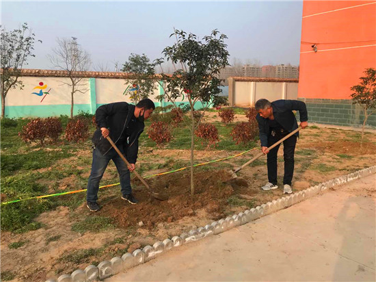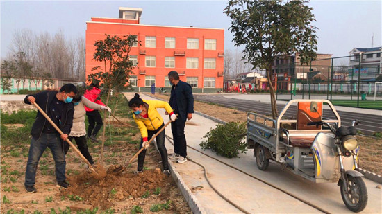陽春三月,春風(fēng)吹綠了枝芽,吹綠了草地,櫻桃花、梨花爭(zhēng)相開放。植樹節(jié)前夕,西華縣蔣莊小學(xué)組織老師一邊戰(zhàn)疫情,一邊開展植樹造林活動(dòng),堅(jiān)持在疫情中為校園再添新綠。