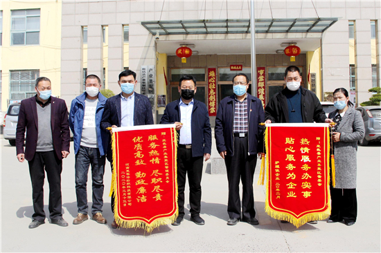“熱情服務(wù)辦實事、貼心服務(wù)為企業(yè)”“服務(wù)熱情盡職盡責、優(yōu)質(zhì)高效勤政廉潔”3月17日,河南護理佳紙業(yè)有限公司和河南梵蒂詩紡織科技有限公司兩家企業(yè)的負責人,來到鹿邑縣產(chǎn)業(yè)集聚區(qū)管委會,送上了錦旗,對管委會服務(wù)企業(yè)發(fā)展表示感謝。
