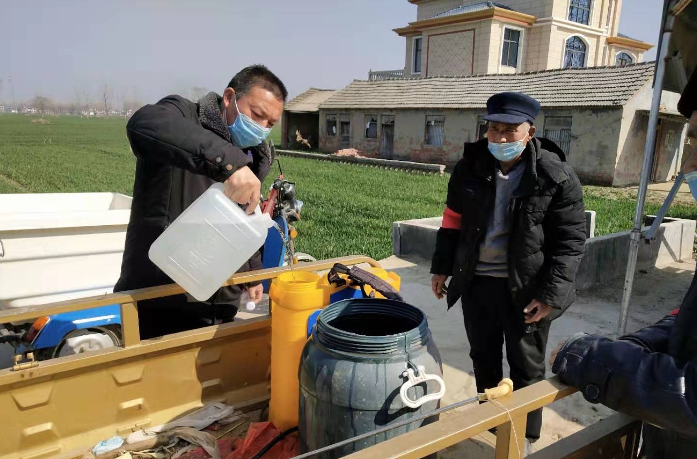 由于缺少消毒用品和防護物資,駐村幫扶工作隊及時聯(lián)系相關(guān)企業(yè),籌集了一批消毒液、酒精、防護口罩、體溫計等物資送到所幫扶的村。