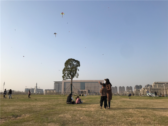 3月20日,周口天氣晴朗,最高氣溫27℃,東風(fēng)3-4級。在市公安局南草坪廣場,市民帶著口罩,在空曠的場地放風(fēng)箏、曬太陽,享受春光。