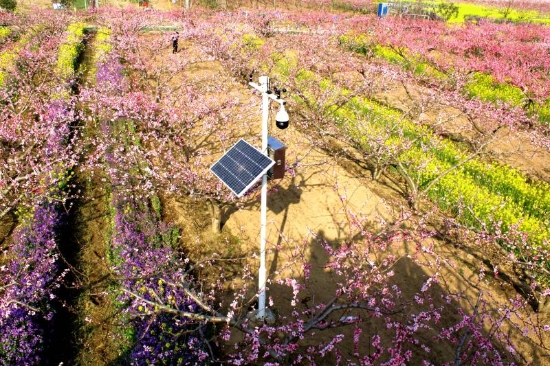 “這兩天,外地客商看到我們桃園安裝上了千里眼,適時(shí)能對(duì)桃園進(jìn)行監(jiān)控,說我們種植的水蜜桃是科學(xué)種植,開花結(jié)果都能看得到,品質(zhì)一定有保證,桃花剛開,訂單就來了,都爭(zhēng)著預(yù)訂俺合作社六月份才成熟的水蜜桃呢?!焙秃鲜⑿老驳卣f。
