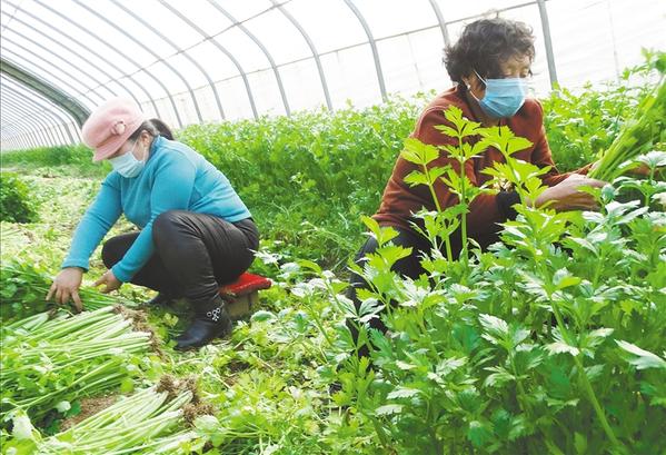 昨日,在沈丘縣周營鎮(zhèn)豫東惠農(nóng)家庭農(nóng)場大棚蔬菜種植基地,村民正忙著采收訂單生態(tài)芹菜。近期來,沈丘縣在抓好疫情防控的同時,出臺系列扶持政策,促進現(xiàn)代設(shè)施農(nóng)業(yè)有序恢復生產(chǎn),帶動當?shù)刎毨Т迕窬徒鼊展ぴ鍪罩赂弧?/p>