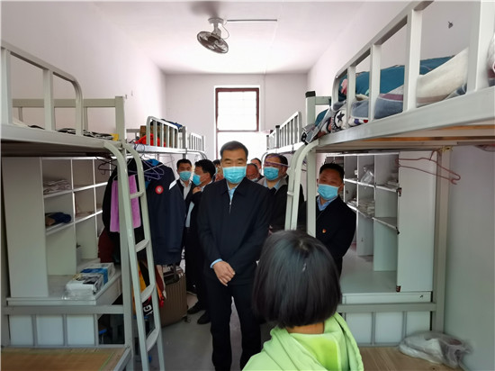 當(dāng)天上午10點(diǎn),縣長田林在縣委常委,宣傳部長李本磊,副縣長陳新民、單正義等陪同下深入商水一高、商水三中檢查指導(dǎo)高三學(xué)生返校復(fù)學(xué)工作。田林一行走進(jìn)餐廳、教室、寢室等地查看指導(dǎo),對高三返校復(fù)學(xué)的學(xué)生管理與教師管理等提出建議,并現(xiàn)場協(xié)調(diào)縣疫情防控指揮部、縣衛(wèi)生與健康委員會與縣教體局及時解決各高中疫情防控口罩的購置儲備等問題。