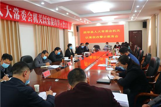 4月16日,西華縣人大常委會機(jī)關(guān)召開全體人員會議,開展以案促改警示教育,安排部署脫貧攻堅等工作??h人大常委會黨組書記、主任周曉燕,副主任趙曉春,黨組成員、副主任王心坎、龐有敬出席。黨組副書記、副主任張國玉主持。
