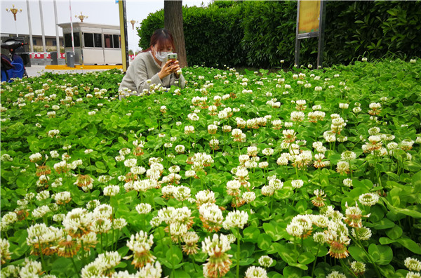 4月20日,在文昌大道道路綠化帶上,市政工人正在為栽種的花卉綠植補充水分。入春以來,我市城區(qū)一直在進行美化綠化,現(xiàn)在各個街道逐漸顯現(xiàn)出絢麗身姿。市民走在市區(qū)的每個街道都能看到各色花卉、綠植,很是養(yǎng)眼。