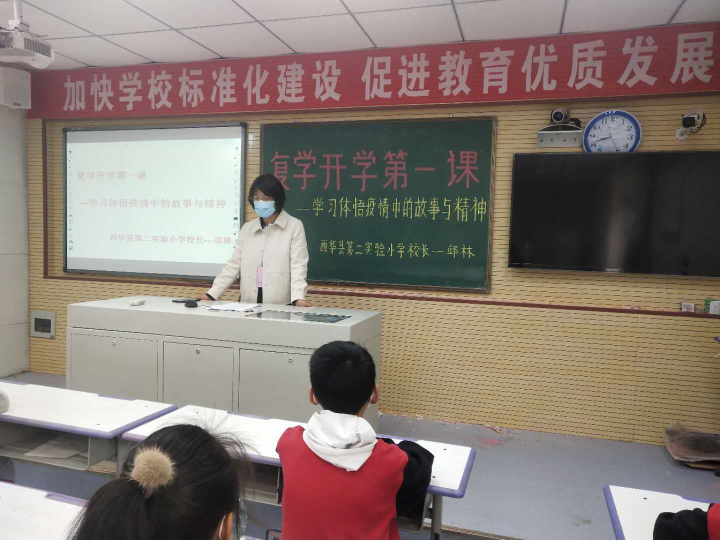 4月27日,根據(jù)防控疫情形勢好轉,按照上級有關部門要求,西華縣第二實驗小學做好了各項安全準備工作,四、五、六年級返校復學。開學的第一課的主題為“生命可貴,安全第一”。
