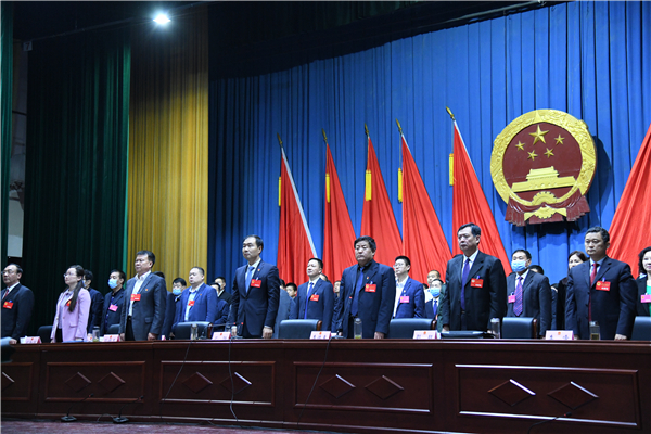 大會在通過監(jiān)票、計票人員名單后,進行了選舉。選舉結(jié)果公布后,全體與會人員起立,奏唱國歌,新當選的縣人大常委會副主任張俊霞,縣人大法制、財經(jīng)專門委員會主任委員和縣監(jiān)委主任王中紅先后向憲法宣誓。會議還表決了關(guān)于政府、計劃、財政、人大常委會及法、檢兩院工作報告的決議??h委書記孔陽作總結(jié)講話。