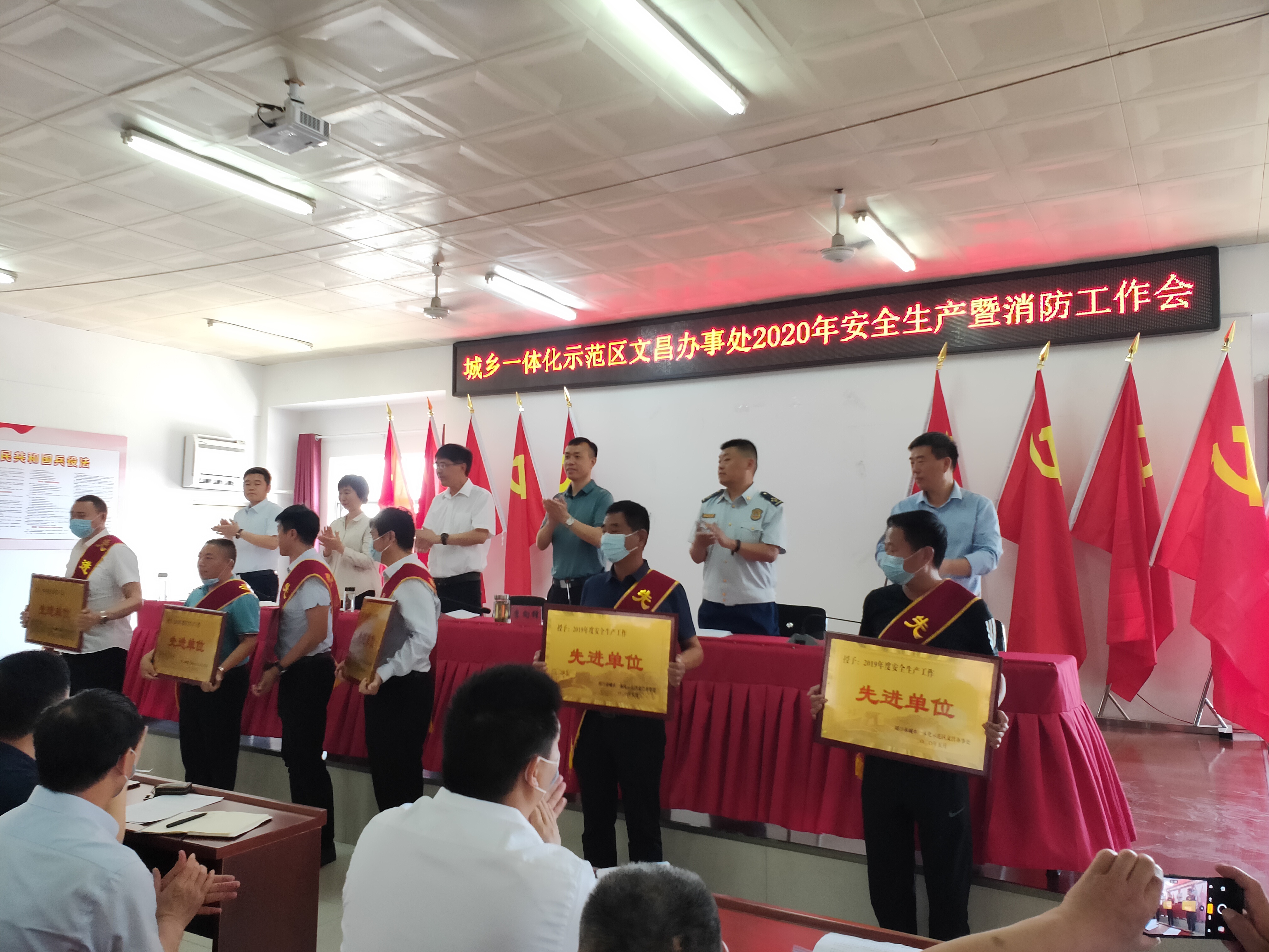 會前,與會人員共同觀看了安全生產(chǎn)警示教育片。文昌辦事處黨委副書記、武裝部長葉林洋、高磊分別宣讀了《周口市城鄉(xiāng)一體化示范區(qū)文昌辦事處關(guān)于調(diào)整安全生產(chǎn)委員會成員的通知》、《示范區(qū)全國兩會期間消防安全專項整治方案》。會議對2019年度安全生產(chǎn)先進單位和先進個人進行了表彰;各社區(qū)負責人向胡光輝遞交《2020年度安全生產(chǎn)目標責任書》。