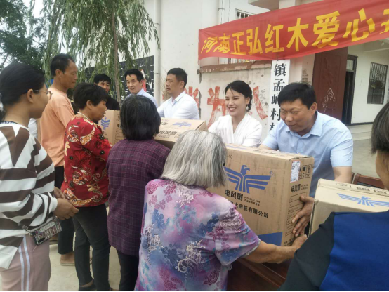 像李榮蘭一樣,當日,孟嶺行政村的22戶建檔立卡貧困戶,均收到了河南正弘紅木有限公司董事長莊園女士送去愛心風扇,個個高興得合不攏嘴。