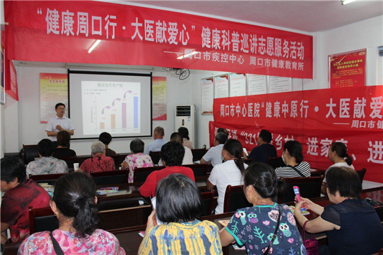 6月11日下午,周口市中心醫(yī)院內(nèi)分泌科主任楊東輝、健康促進辦公室主任范桂麗帶領健康巡講志愿服務隊來到慶豐社區(qū),為廣大居民開展“糖尿病如何科學防治”科普講座。