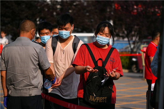 7月7日上午,2020年高考迎來開考,周口市10萬考生步入考場(chǎng)。圖為周口考點(diǎn)的考生入場(chǎng)。