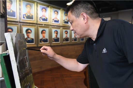 走進(jìn)毗鄰周口市區(qū)的張一油畫工作室,一股墨香迎面撲來。讓人眼前一亮的是畫室四周掛滿的人物肖像,特別是南面墻上的一組開國將帥肖像畫尤為引人注目。將軍們威武雄健,或凌厲或威嚴(yán)的眼神讓人回想起他們那個戎馬倥傯、戰(zhàn)火紛飛的年代。