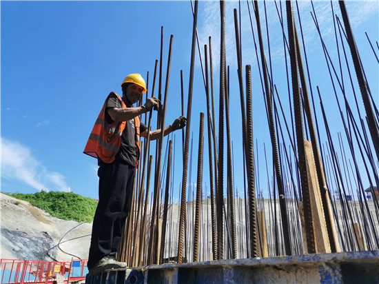 夏日豫東,驕陽(yáng)似火。8月3日,在中交二航局沈丘沙潁河航道升級(jí)改造工程節(jié)制閘施工現(xiàn)場(chǎng),工人們頂烈日,戰(zhàn)酷暑,趕工期,力爭(zhēng)早日打通水上交通大動(dòng)脈,助力周口“滿城文化半城水,內(nèi)聯(lián)外通達(dá)江?!敝性鄢墙ㄔO(shè)。圖為工人們?cè)谝韷﹁徝?、閘堆鋼筋綁扎。