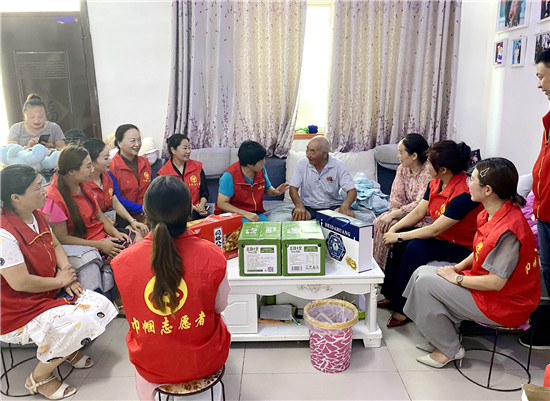 當(dāng)日下午,志愿者及愛心商家一行20多人,在駐村干部及村支部書記陪同下,來到遲營鄉(xiāng)順河村走訪慰問退伍老兵和老黨員,為他們送去豆奶、八寶粥、飲料、糕點等慰問品。大家不顧酷暑高溫天氣,走村入戶,一家一家地走訪,為退伍老兵送去節(jié)日的問候,聆聽老兵講述那艱苦卓絕的戰(zhàn)爭和轟轟烈烈社會主義建設(shè)的歲月,讓他們感受到黨和政府及社會的關(guān)懷關(guān)愛,受到好評。