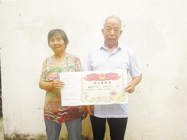 家人手持沈東平烈士證書(shū),表示永不忘記先輩遺愿。