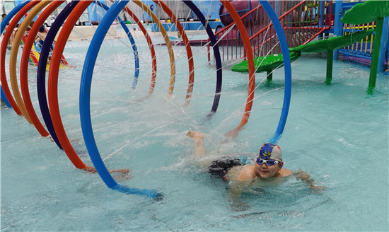 8月16日,不少家長帶孩子在周口游泳館游戲嬉戲。持續(xù)的高溫天氣讓周口進(jìn)入“燒烤”模式,水里的清涼世界成了消暑降溫的好去處,不少市民選擇到游泳館、水上游樂場(chǎng)館,既可以游泳鍛煉身體,也可以和孩子們?cè)谒杏H子玩耍。